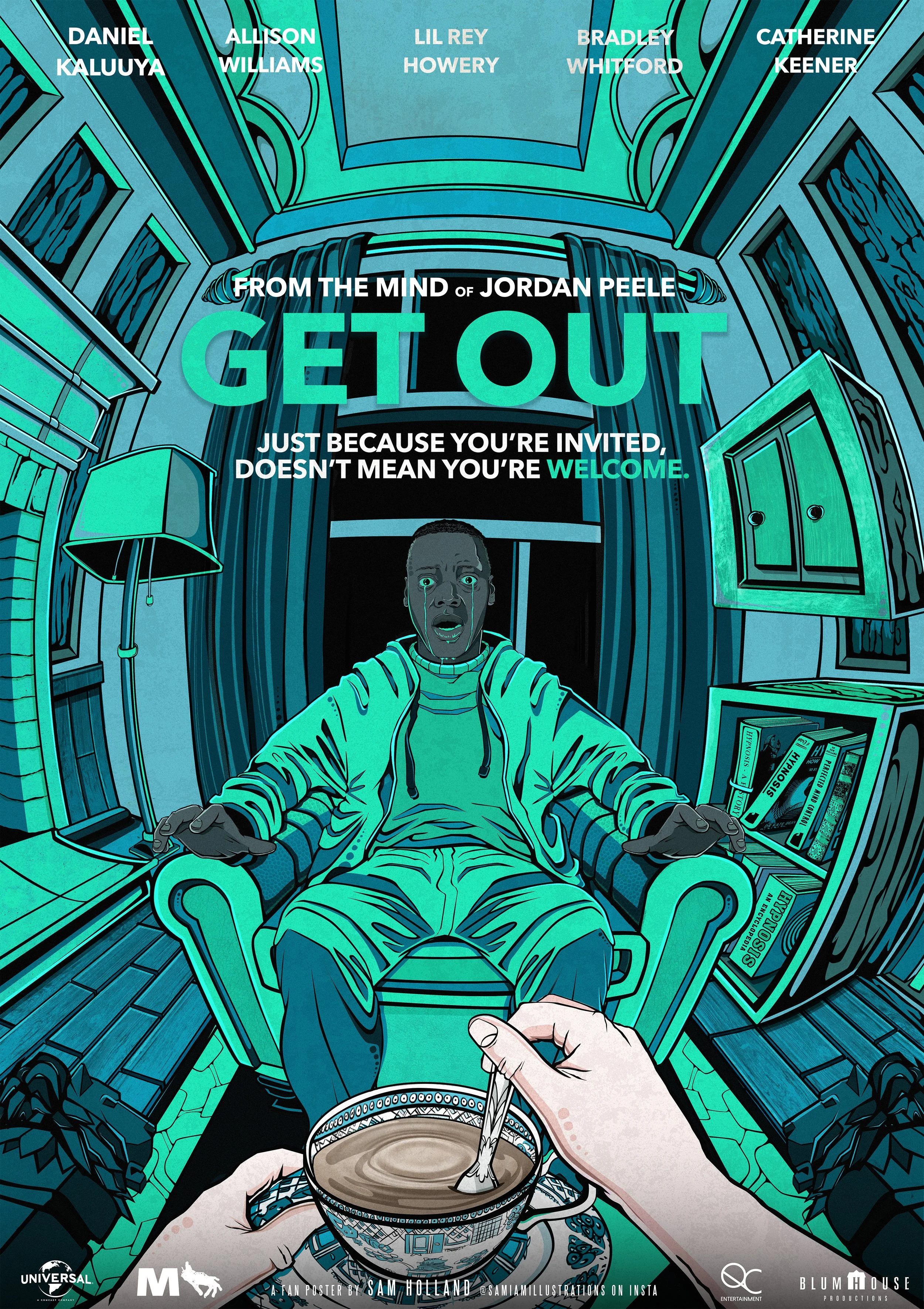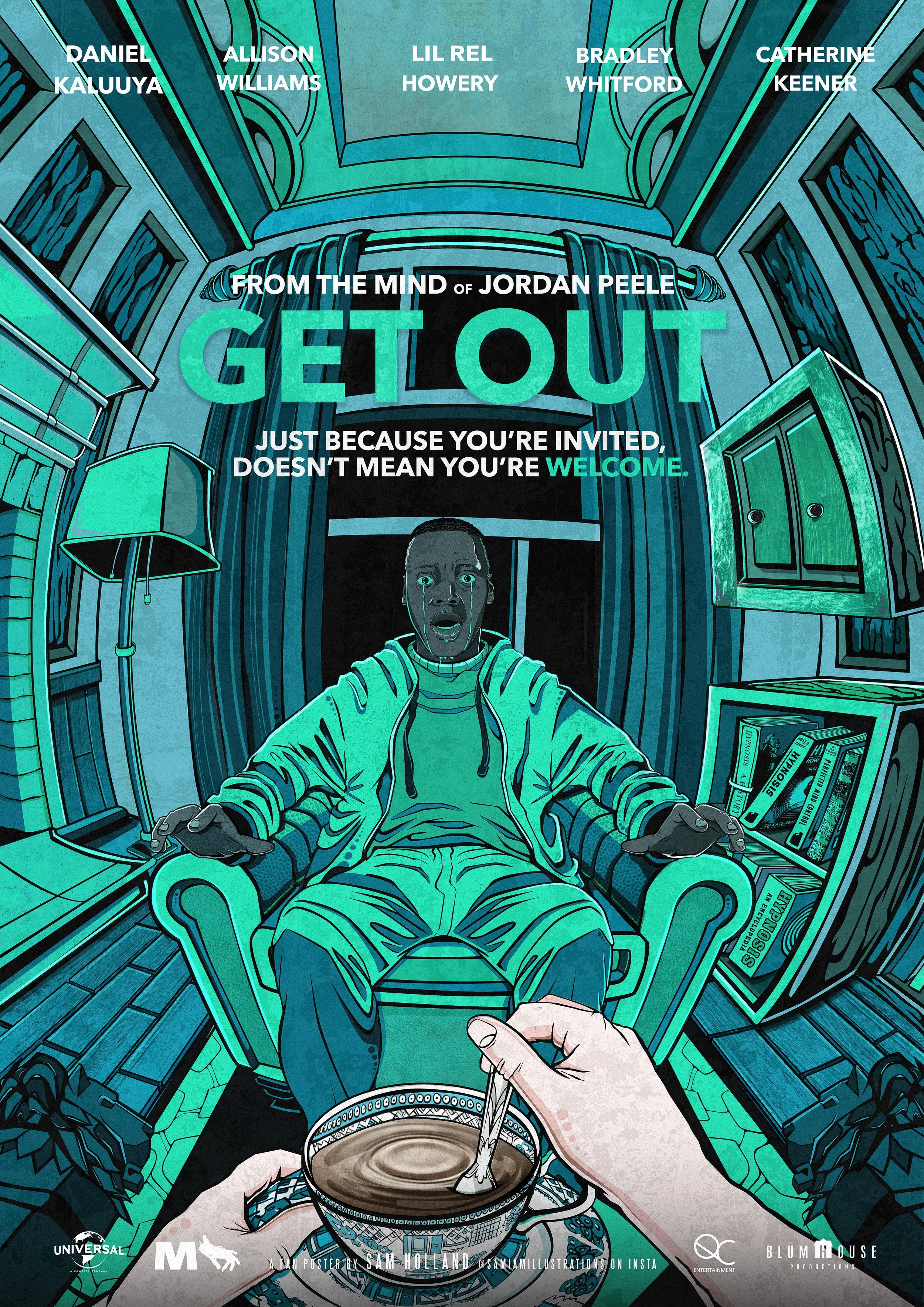 Illustrated movie poster for Jordan Peele’s 2017 modern classic Get Out, originally commissioned by Eek! Film Club based in Plymouth, Devon, to help advertise their screening of the film.