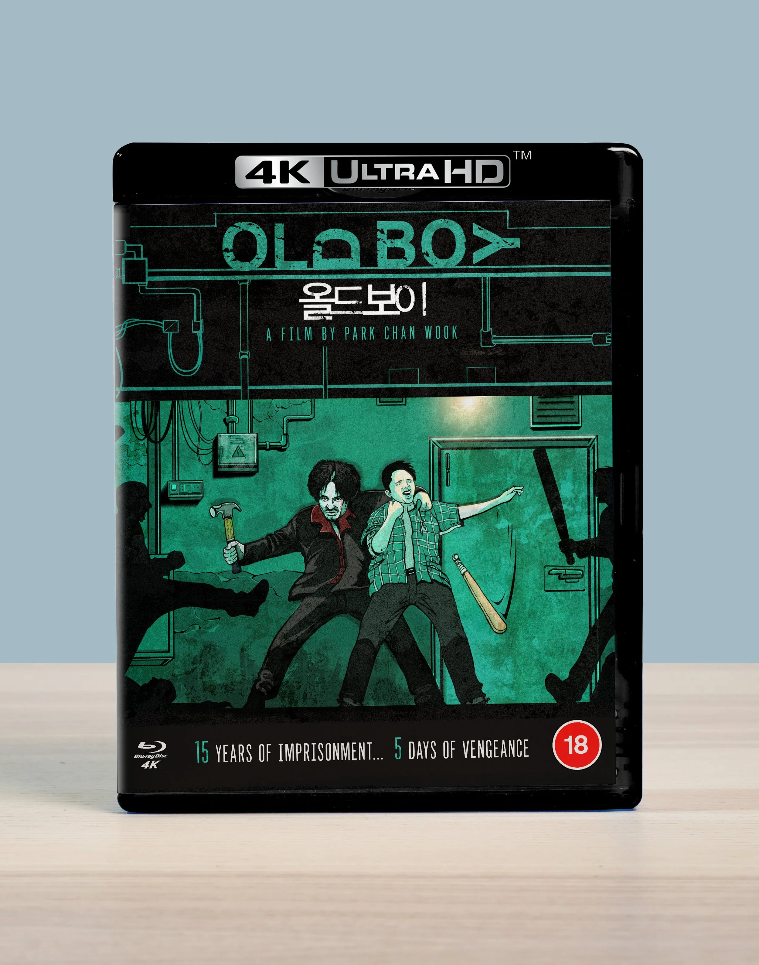 A re-imagined 4K blu-ray cover design of Park Chan-Wook’s 2003 thriller classic, Oldboy.