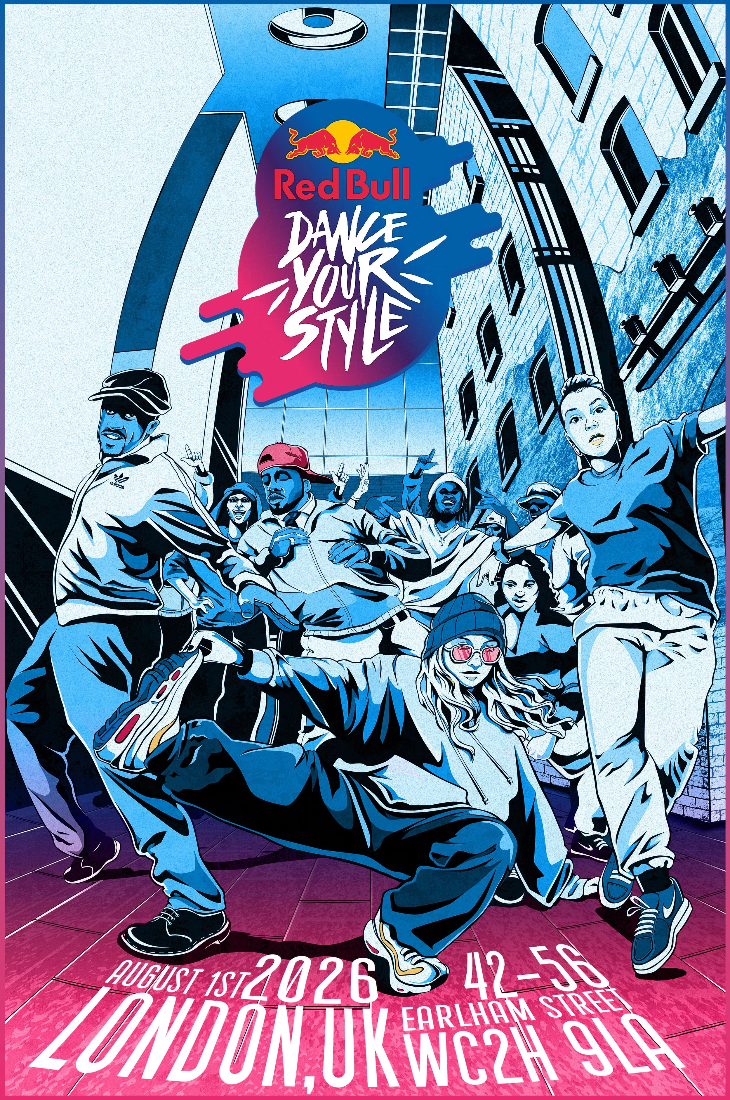 An illustration of a series of London based dancers for Scene Magazine’s SNAPSHOT zine, highlighting key events and moments from the UK street dance scene in 2025.
